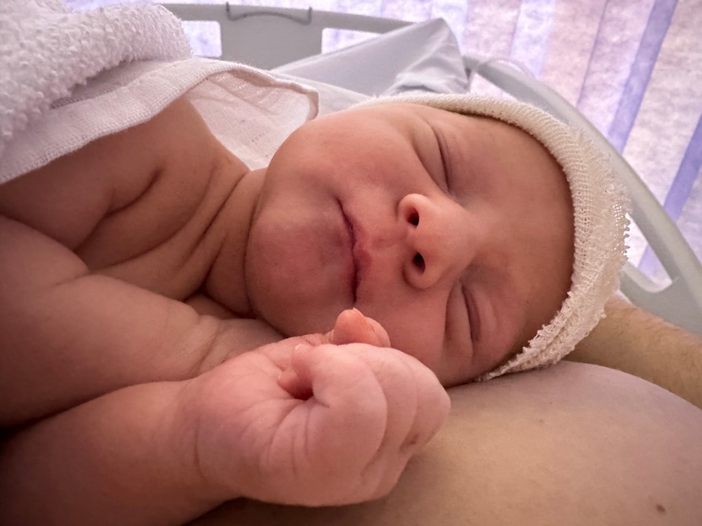 Here’s little Science Baby when he was just a few hours old. Skin to skin contact got the love hormone flowing in both of us.